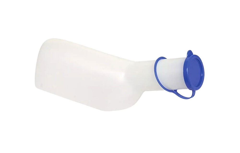 Urinflaschen für Männer sind in der Krankenpflege und Altenpflege benutzte Produkte um den Urin bequem auffangen zu können und danach entsorgen zu können. Der Deckel der Urinflasche schließt den Inhalt hygienisch ab.